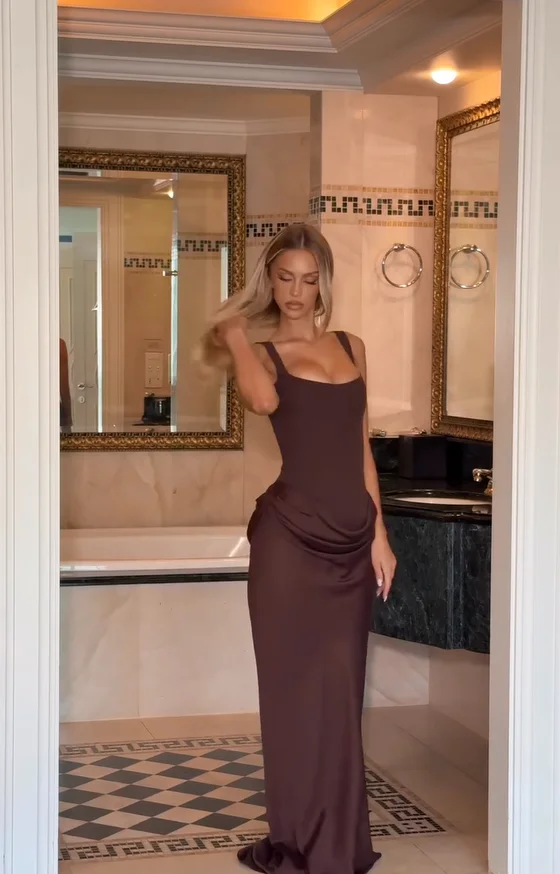 1. Glamorous Shinny & Luxury Design:Crafted with shimmery fabric, this maxi dress catches the light beautifully, exuding a luxurious and eye-catching vibe that stands out at any event. The subtle shine adds elegance without being overly flashy, perfectly matching the Positioning of a high-end party or wedding guest outfit.